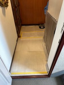 脱衣所部分をしっかりと養生。