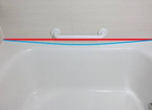 浴槽の縁をなぞった、青い線にご注目。
