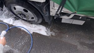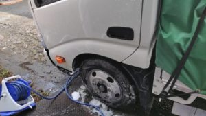 トラック2号の正面が泡で覆われています。