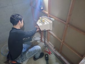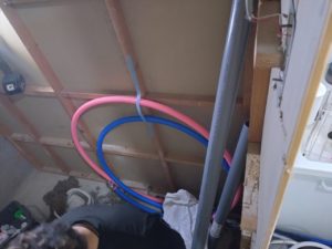 お湯と水の配管をつなぎます。