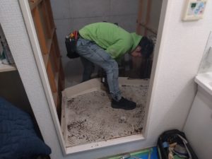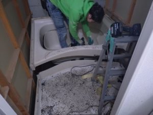 なんと職人さんが電気ノコギリで浴槽を