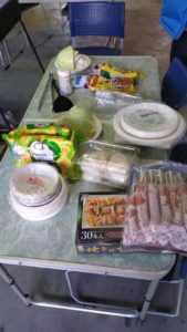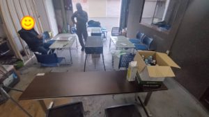 前日の土曜日から机などを出して