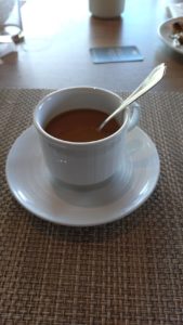 コーヒーにミルクと砂糖が入っています。