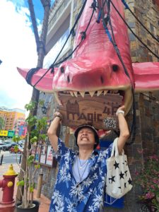 中の人が国際通りでお土産を