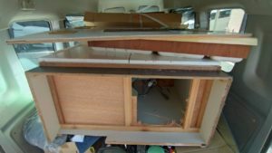 軽バンの後ろがすごいことになっています。