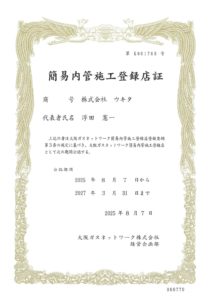 弊社が簡易内管施工の登録店となりました。