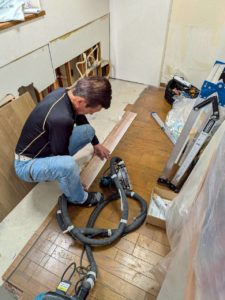 床のフローリングをカットしていきます。