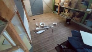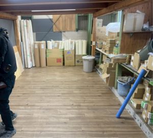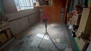 倉庫の手前はフロアタイルを貼りましたが、