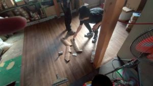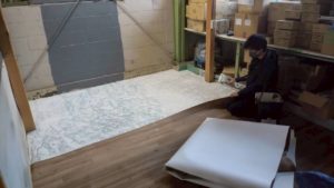 奥はクッションフロアを敷いていきます。