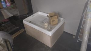 この台の上に防水パンという板を置きます。