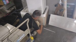切断している職人さん。
