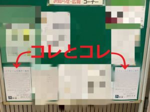 掲示板に弊社のお知らせが貼られているのを