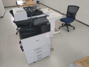別の作業員の方がパソコンと複合機の