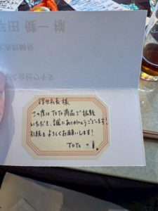 弊社担当のTOTO営業さんの字が